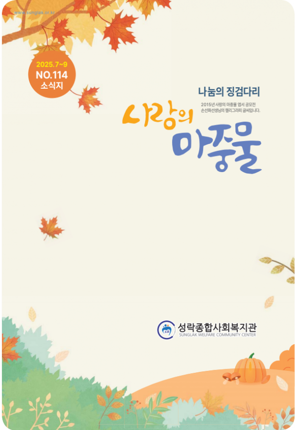 사랑의 마중물 114호 페이지 정보 작성자홈페이지담당자 댓글 0건 조회 30회 작성일 25-11-06 13:33 본문 사랑의 마중물 114호 첨부파일 사랑의 마중물 114호 웹용.pdf (3.5M) 5회 다운로드 | DATE : 2025-11-06 13:33:52 목록 다음글사랑의 마중물113호 25.07.18 댓글목록 댓글목록 등록된 댓글이 없습니다.